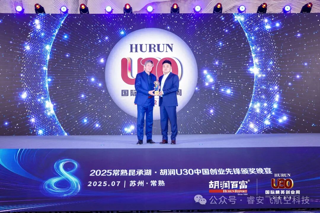 7月10日,由胡润百富主办的“胡润U30中国创业先锋颁奖仪式”在常熟日航酒店隆重举行。来自各地、各界的U30创业者、知名企业代表、投资机构代表、政府领导、知名专家学者与媒体朋友们齐聚一堂,共谋续写创新史。本次盛会,致力于汇聚更多创新要素,激发创业者和企业家们在企业开拓道路上的无限激情与创造力,共同推动创新创业迈向新征程。作为本届上榜人所在单位之一,睿安飞科技代表出席了本次活动,并接受了由《胡润百富》创刊人胡润先生亲自颁发的U30中国创业先锋奖杯。